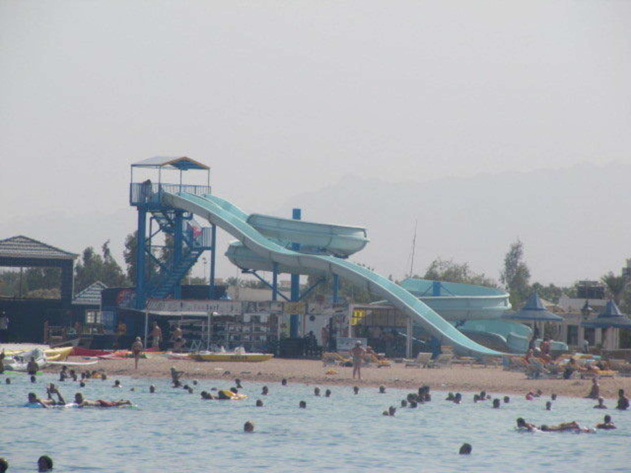 Blick auf den Strand mit der großer Rutsche