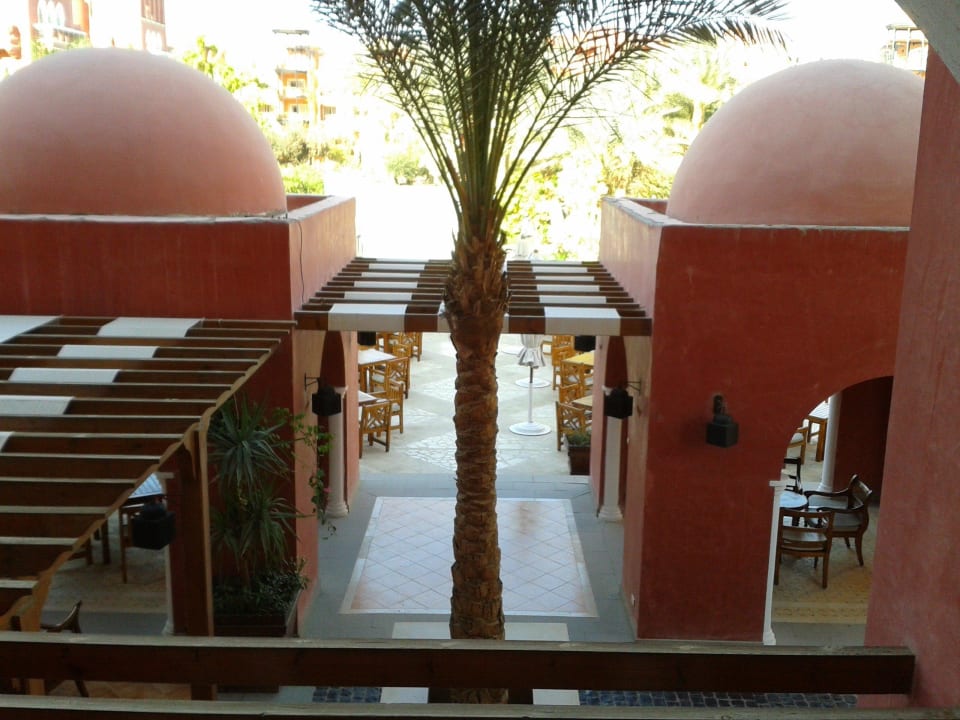 Vom Balkon Das war der Blick von einem unserer Balkone.Angedeutet sind die Tische in einem kleinen Snackrestaurant mit Bar, direkt am Pool.