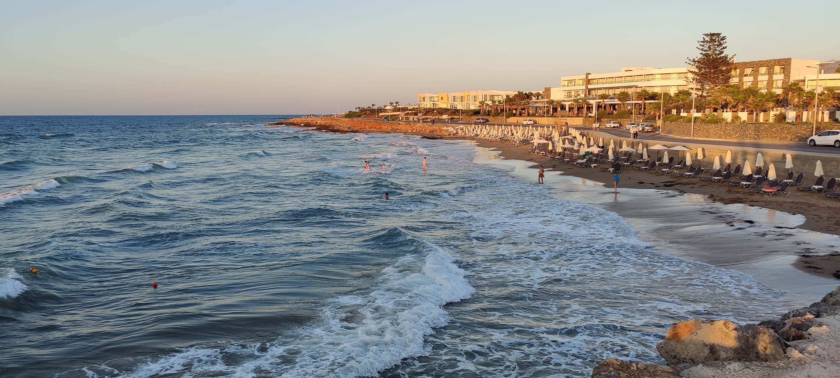 Strand des Hotels, Hotel im Hintergrund
