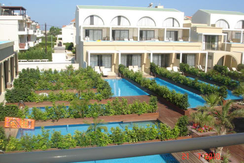 Widok z pokoju na pokoje z basenami prywatnymi