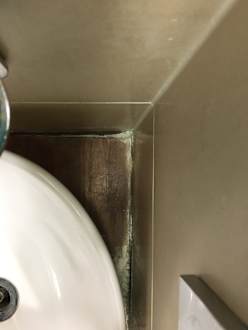 Kalk in allen Ecken rund ums Waschbecken