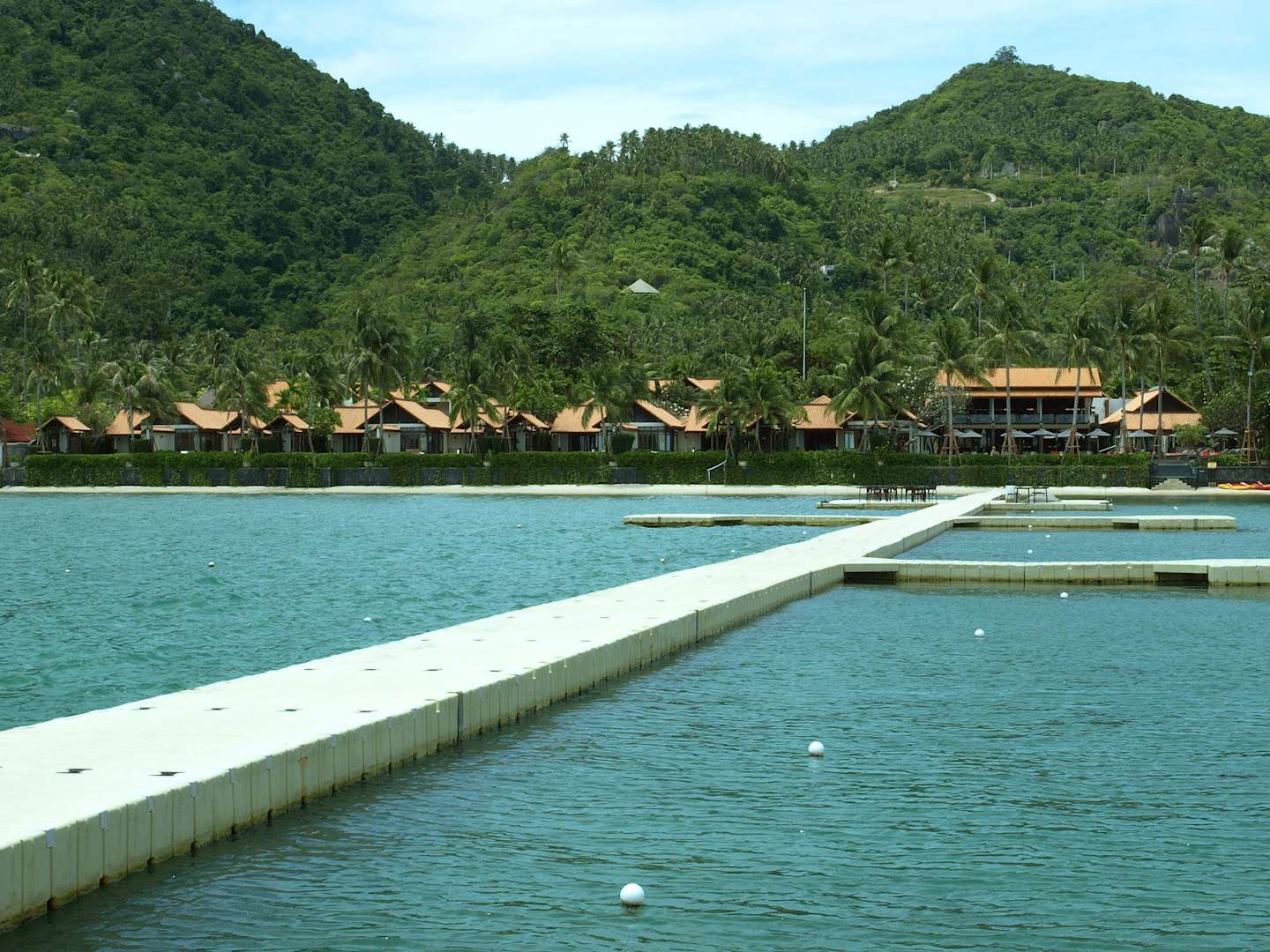 Blick vom hoteleigenen Steg auf die Hotelanlage