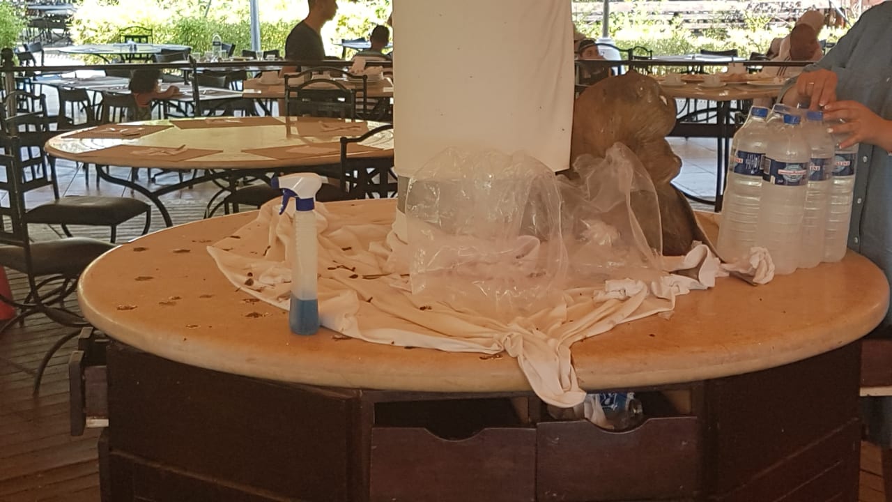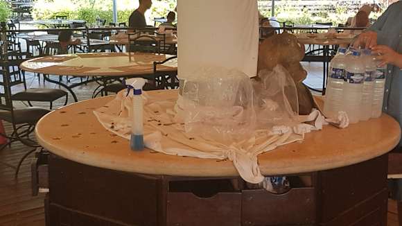 Mit der Sprühflasche wird dann mal der Tisch sauber gemacht...