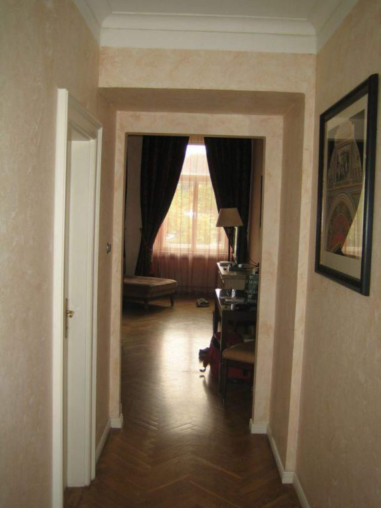 Blick von Flur ins WohnzimmerDie Tür rechts ist die Gästetoilette.