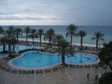 Pool aus der 2 Etage an einem regnerischem Tag aufgenommen