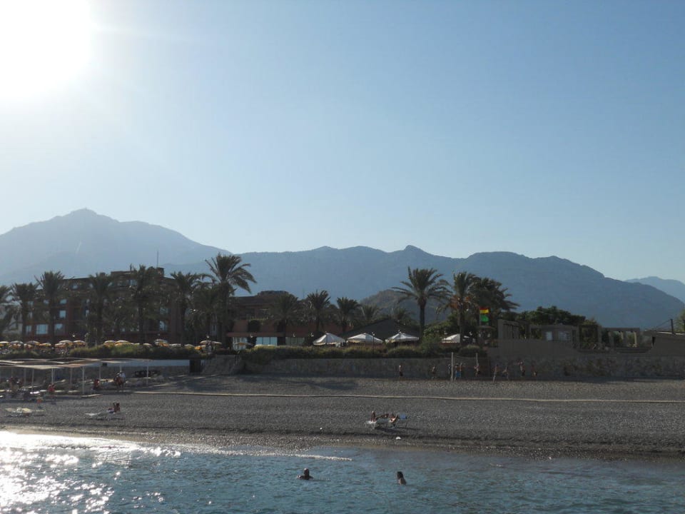 Ausblick vom Steeg auf Strand und Hotel