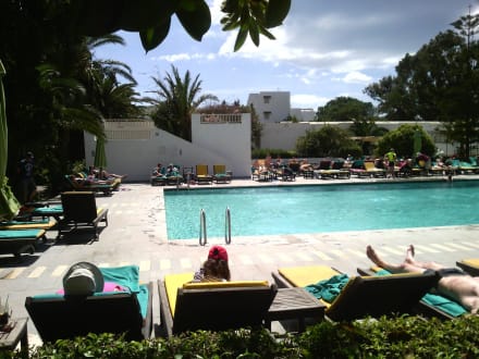 Sonniger und schattiger Pool