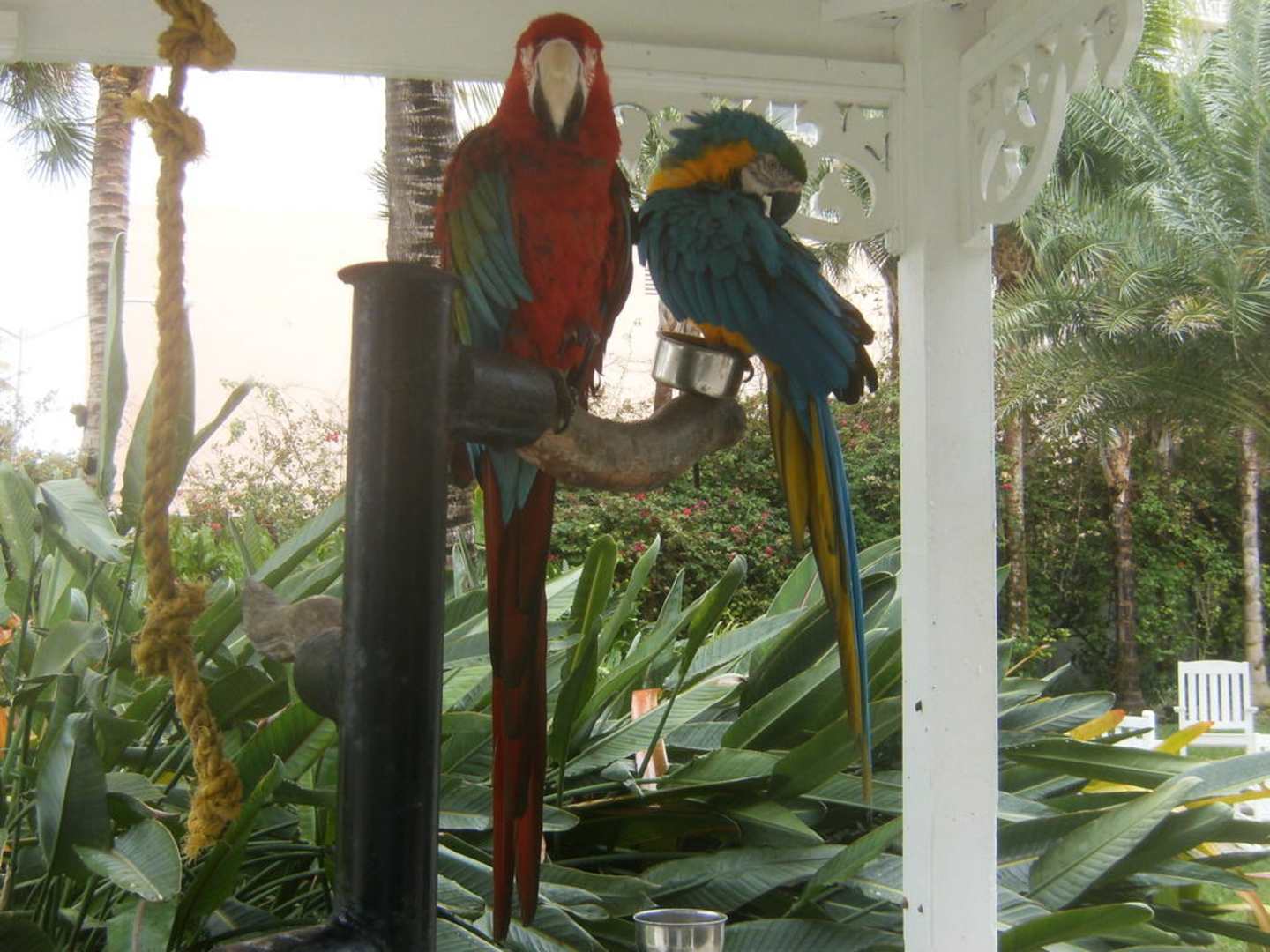 Papageien im Hotelgarten