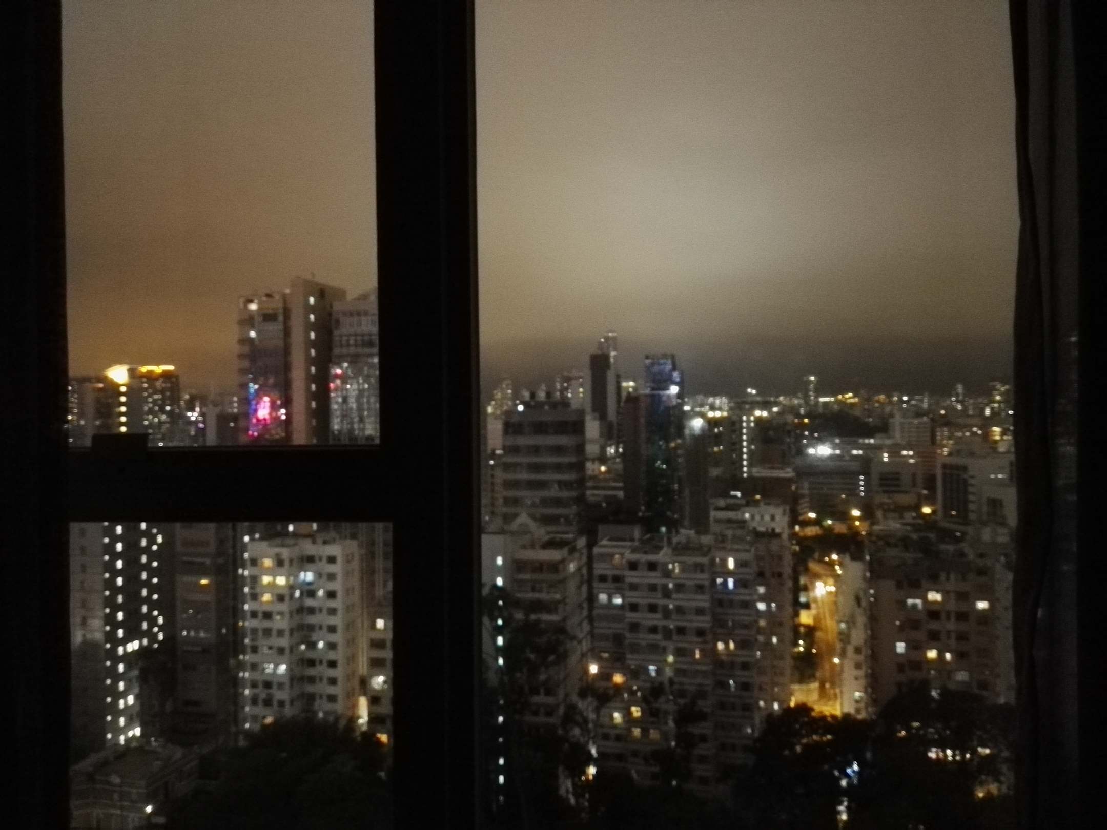Schöne große Fenster, Ausblick abends im April 2019, leider Regenwetter 15 Grad