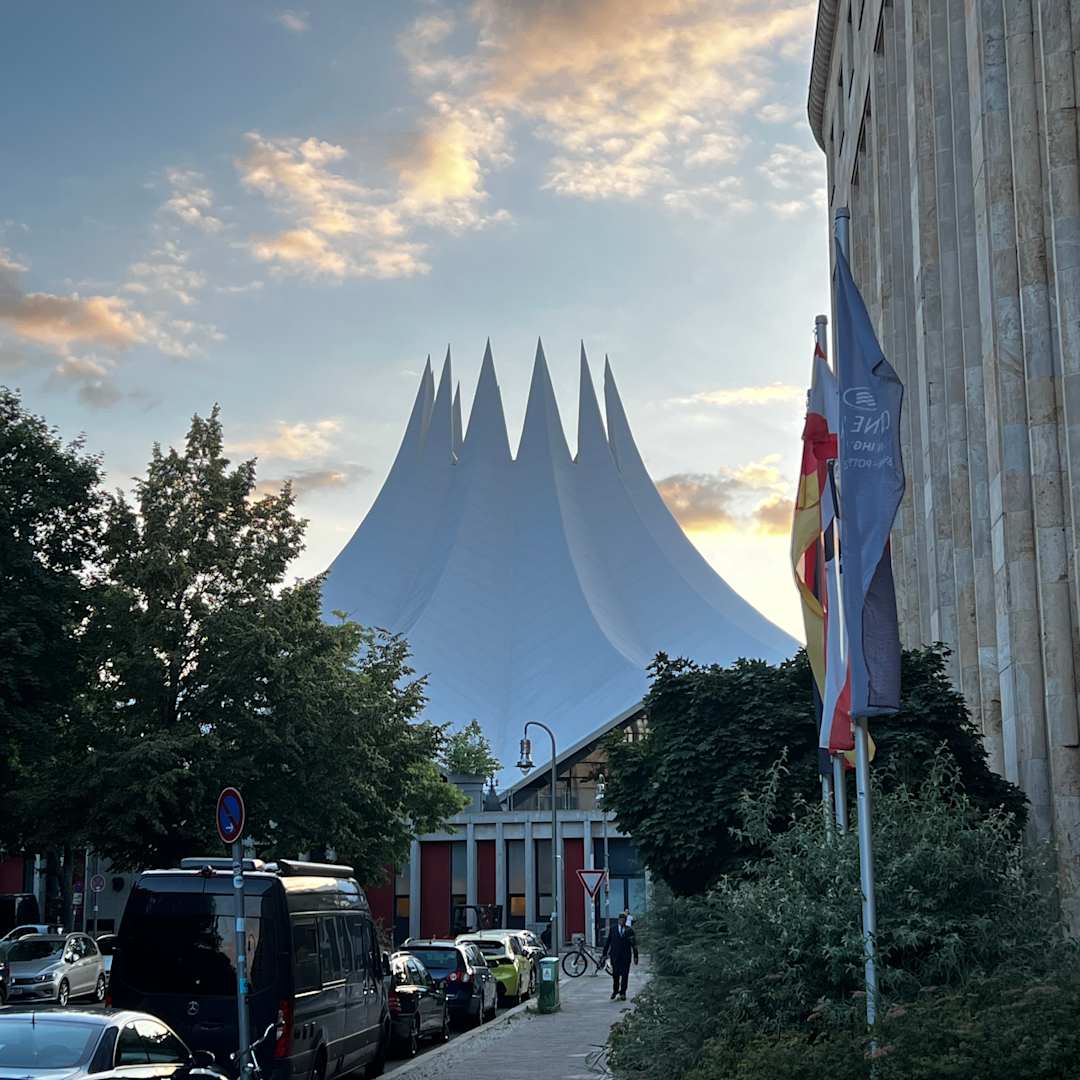 Blick vom Hoteleingang (rechts) zum Tempodrom