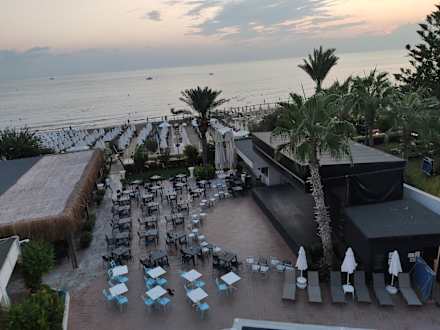 Anex Außenanlage mit Pool und Strand. Bühnenbereich