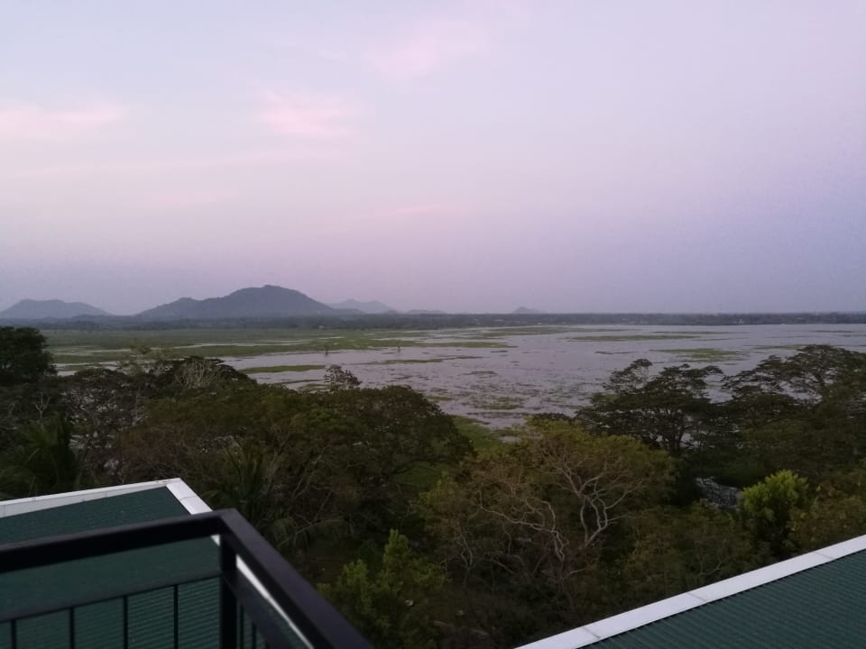 Ausblick von der Dachterrasse, bei der man abends Flughunde sehen kann