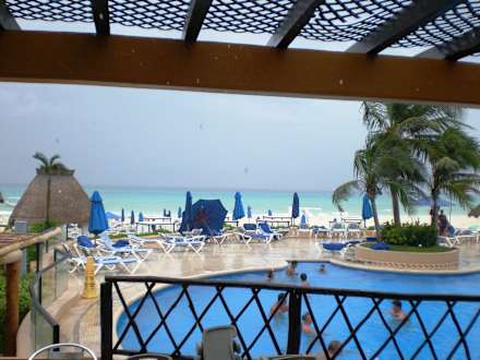 Schöner Blick zum Pool und Strand