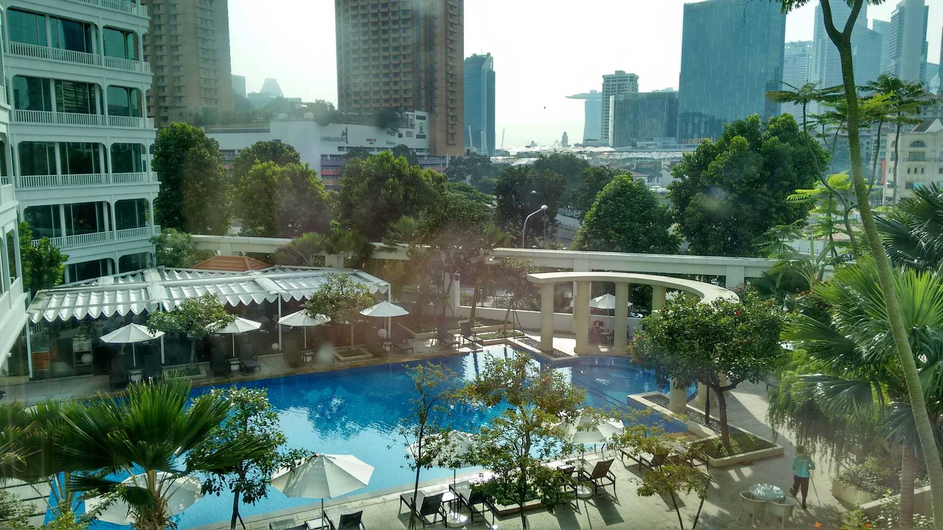 Blick vom Zimmer auf das Pool
