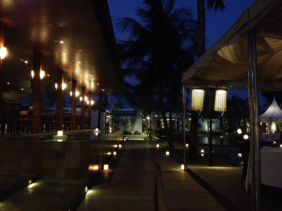 Blick vom Breezes bei Nacht zum Hotel
