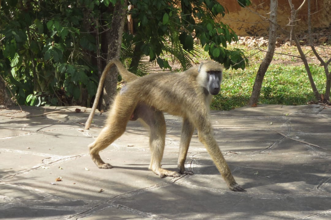 Ein Pavian spaziert durch die Anlage