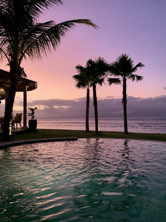 Wunderschöner Sonnenuntergang (ganz links ist die Frühstücks-/Bar-Terrasse)