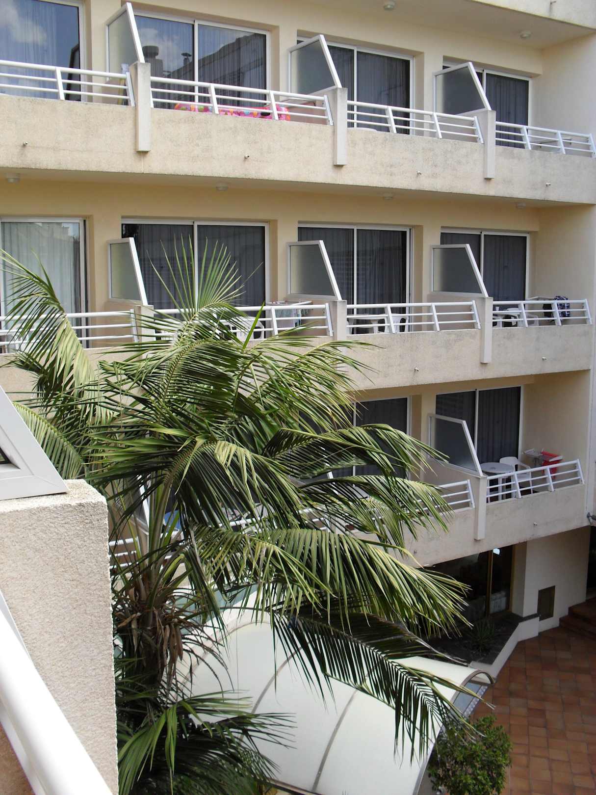 Einzelzimmer mit Blick zum Hoteleingang
