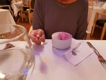 RestaurantLecker Eis,leider aus der Suppentasse,mangels anderen Gefäß!