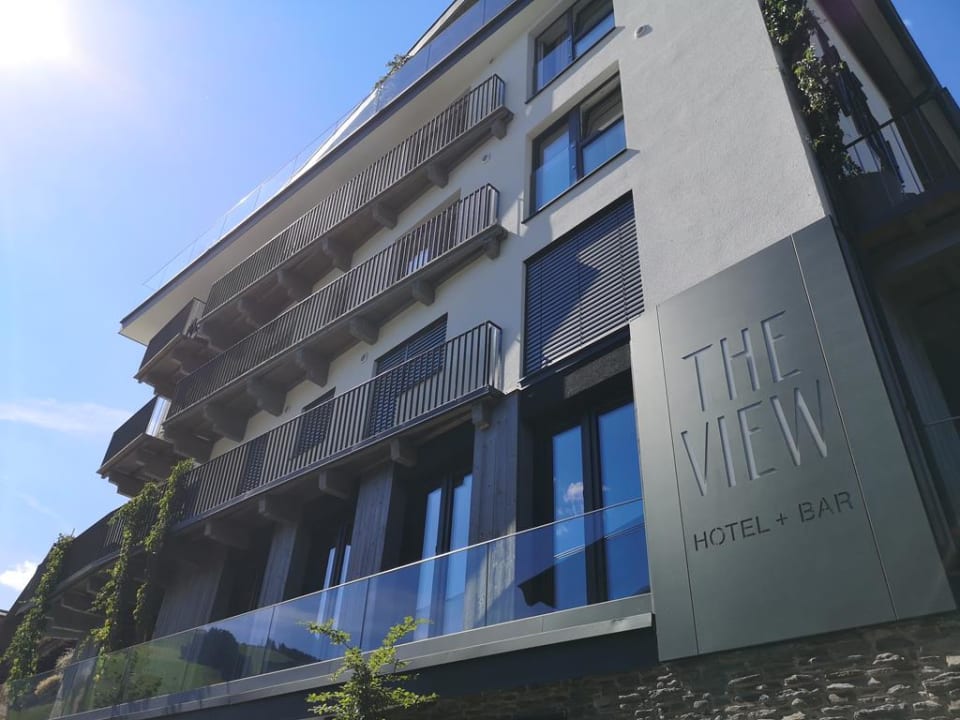 Hotelfront, Zimmer mit Sicht zum Dorf.