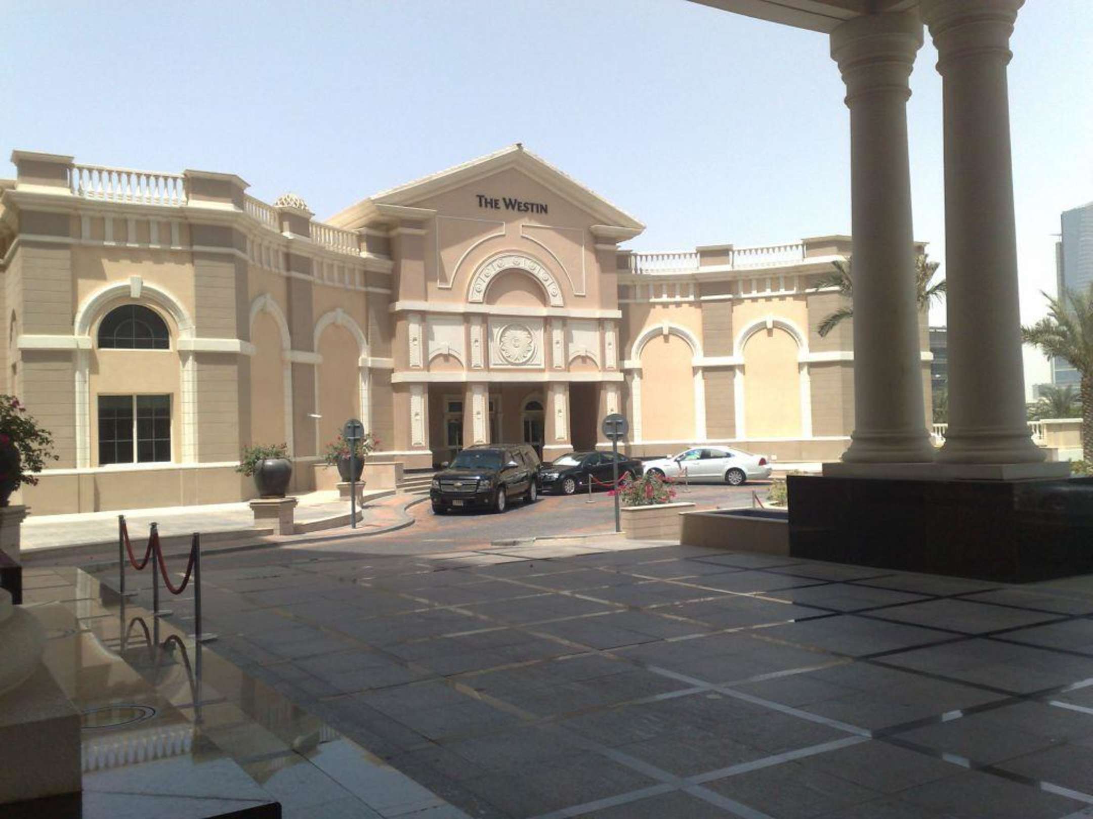 HotelauffahrtRechter Hand befindet sich ein großer Saal, der für offizielle Veranstaltungen genutzt wird. Im Hotel selbst bekommt man aber nie mit wer darin gerade tagt. Abends sah man z.B. öfter große Luxuskarossen wie Bentley, RR, Ferrari.... vorfahren
