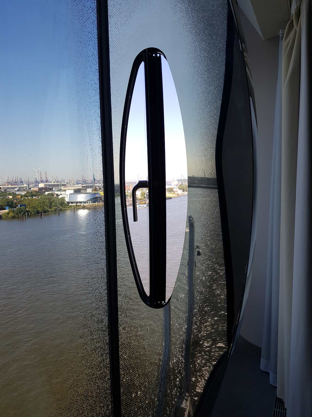 Blick aus dem Fenster mit der öffenbaren Klappe . (Deshalb auch die Rundungen an manchen Fenstern)