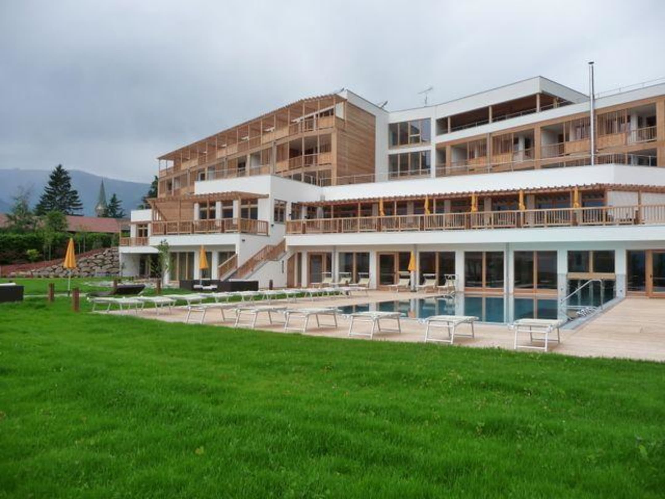 Blick vom Garten auf die Südseite des Hotels