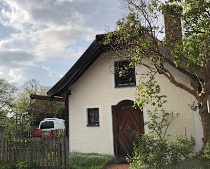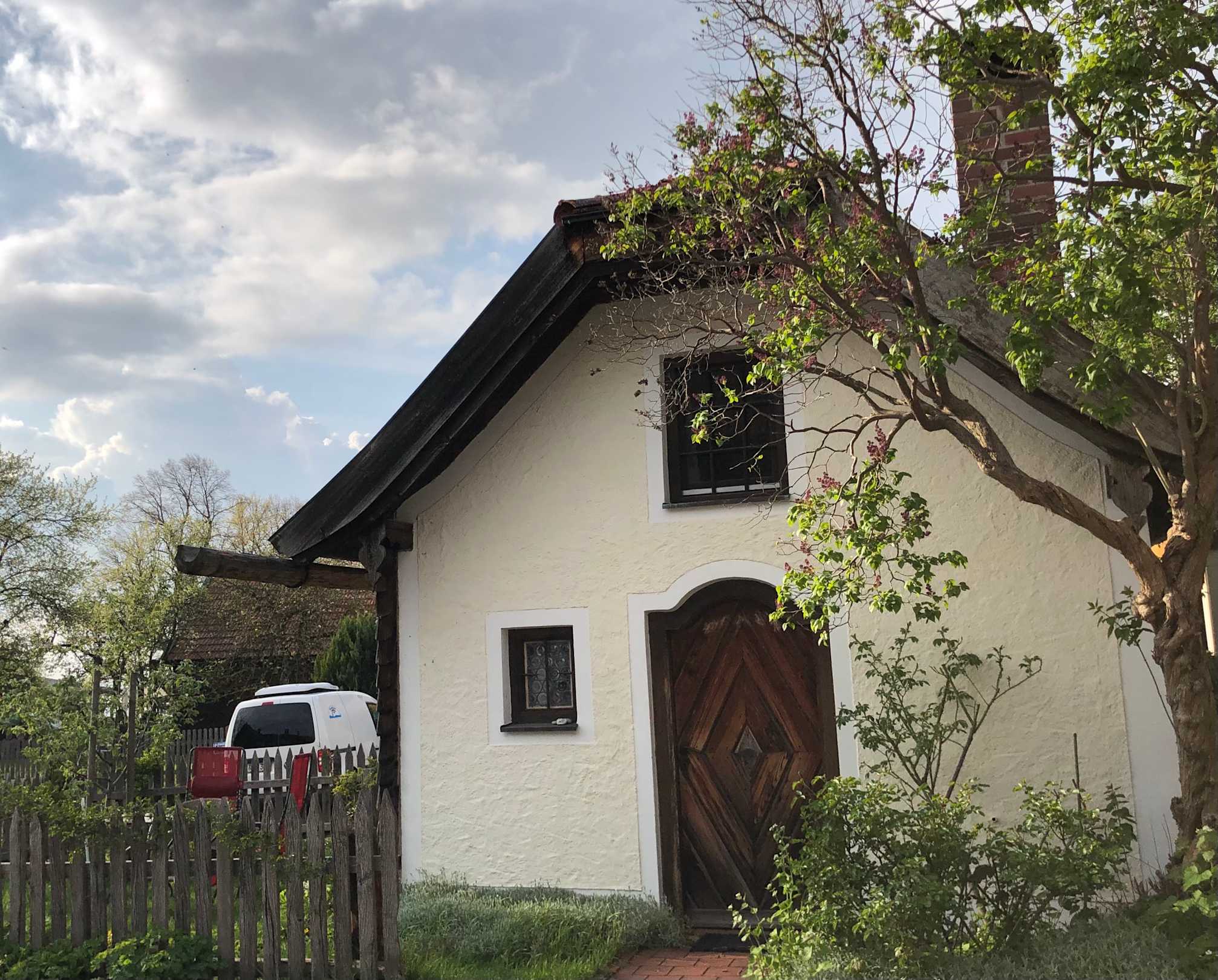 Das Häuserl von außen - links daneben ein kleines Gärtchen.