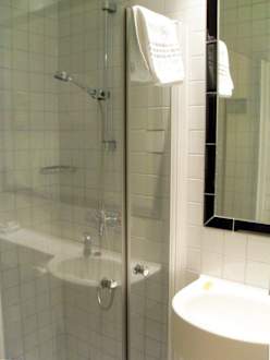 Die Dusche im Bad eines Einzelzimmers