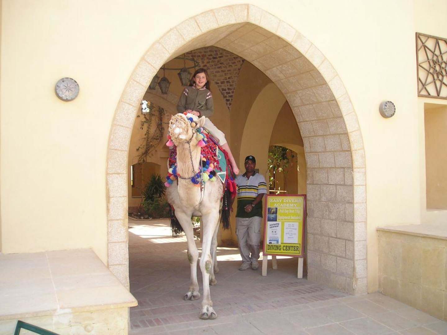 Dieses zutrauliche Kamel reitet mit mir durch die Hotelanlage