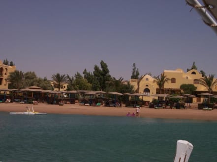 Blick vom Wasser auf das Hotel
