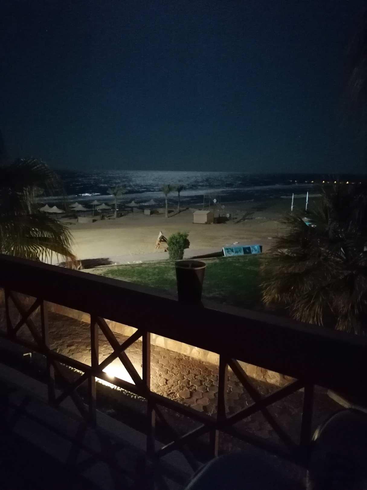 Balkonaussicht bei Nacht, wenn man Meerblick bucht.