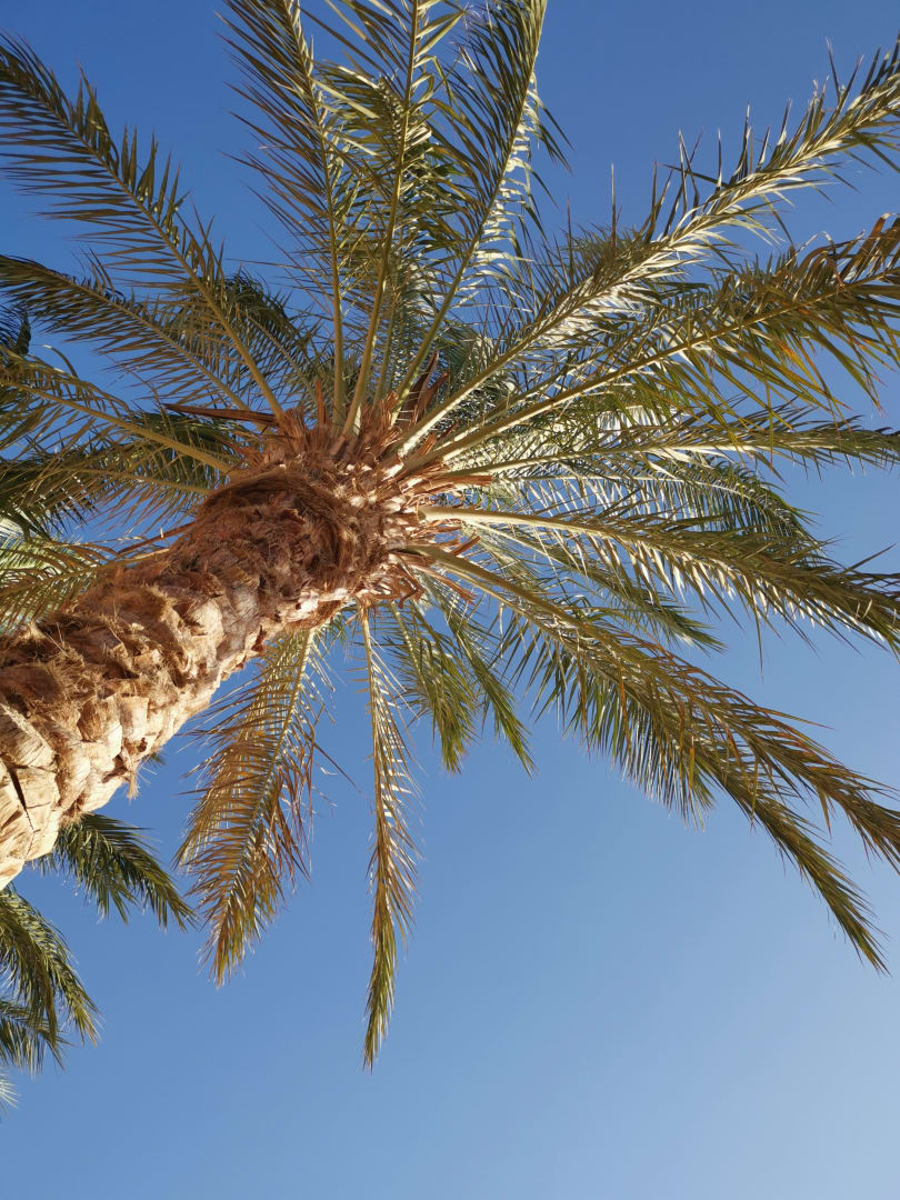 Man liegt am Pool unter so schönen Palmen