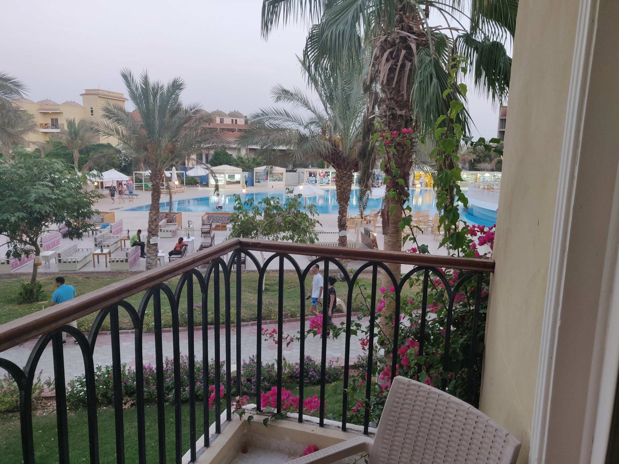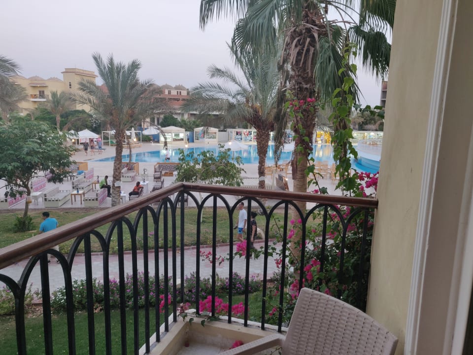Alle Zimmer haben den Balkon Richtung innen zu den Pools, Bars usw.