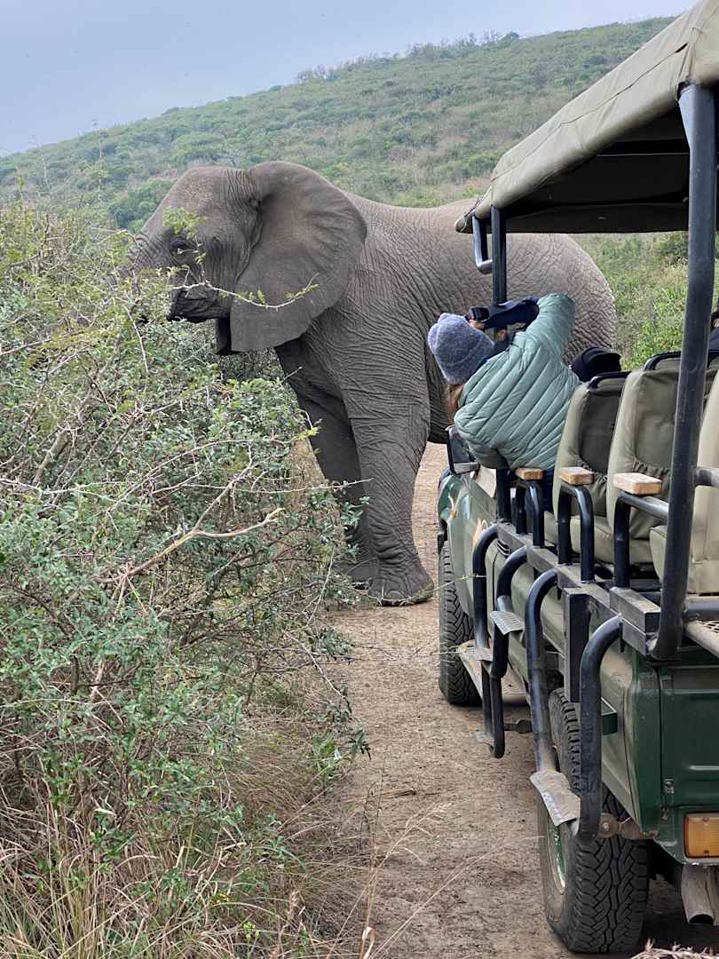 Sport & FreizeitDie wilden Elefanten sind an Menschen "gewöhnt" mehr dazu gibt es in den Büchern rund um Thula Thula zu erfahren (einfach mal googeln)