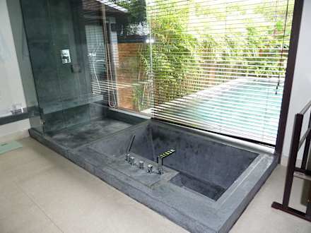 Badewanne und Dusche mit Aussicht