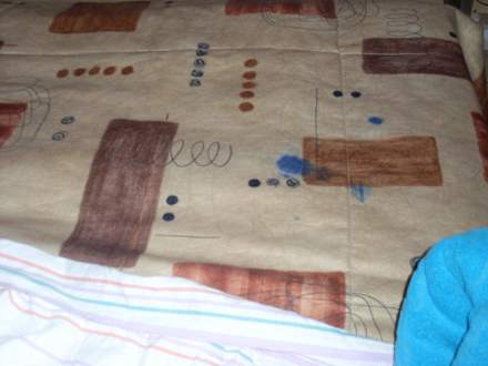 Dies ist nur ein Eindruck vom Bett. Dort waren auch viele Flecken von Schwarz bis Rot.