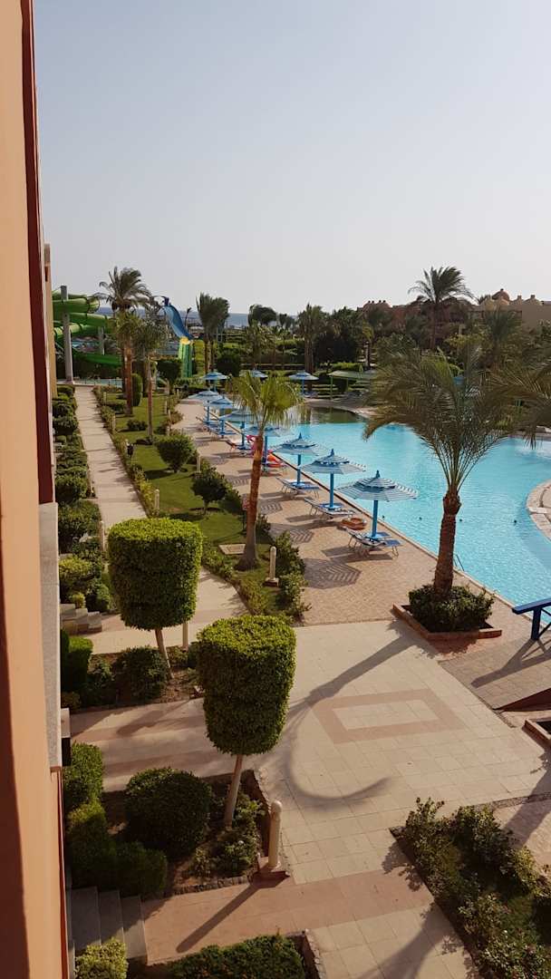 Vom Balkon auf Pool Titanic Beach