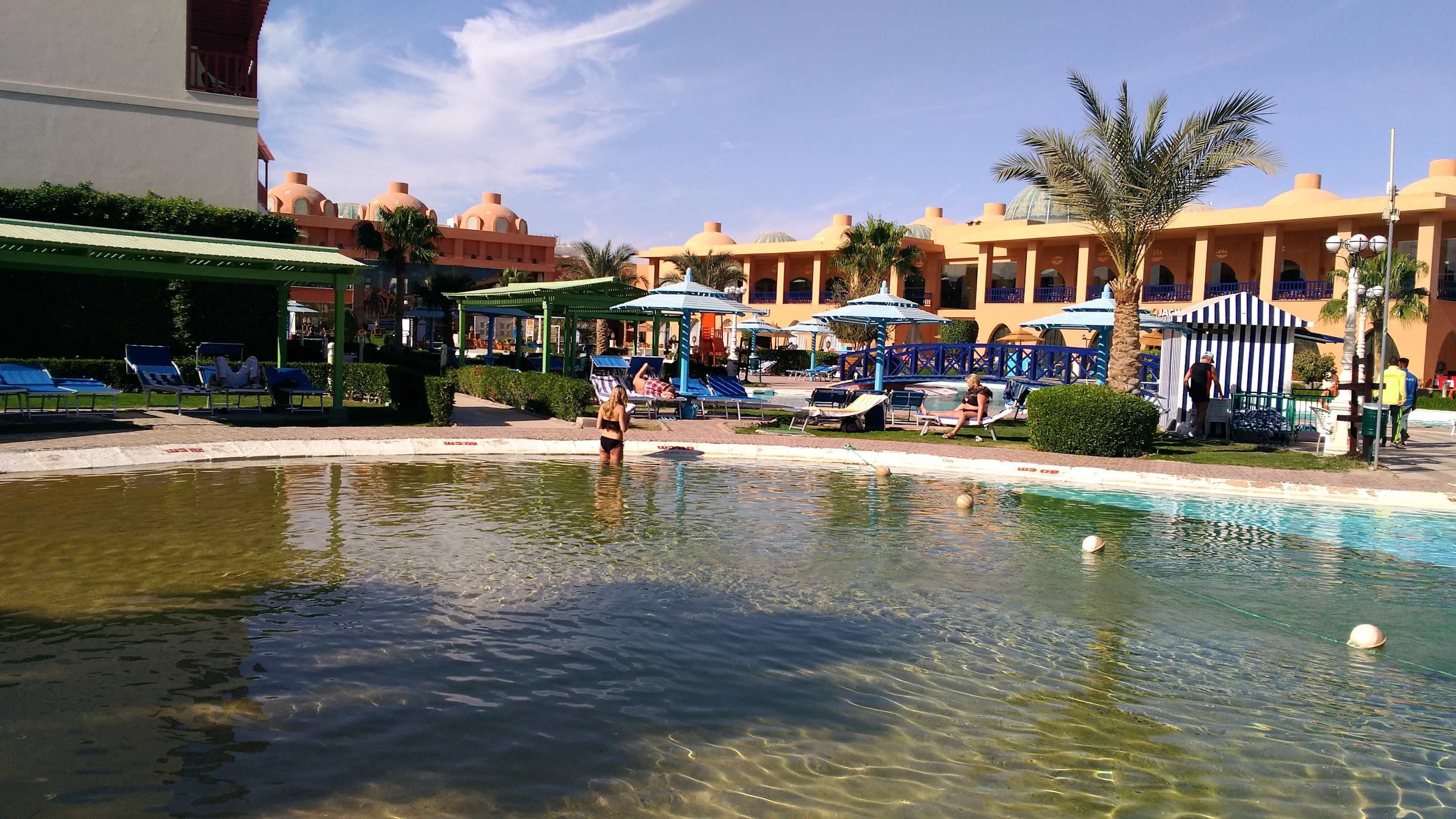 Blick vom Zimmer zum Pool