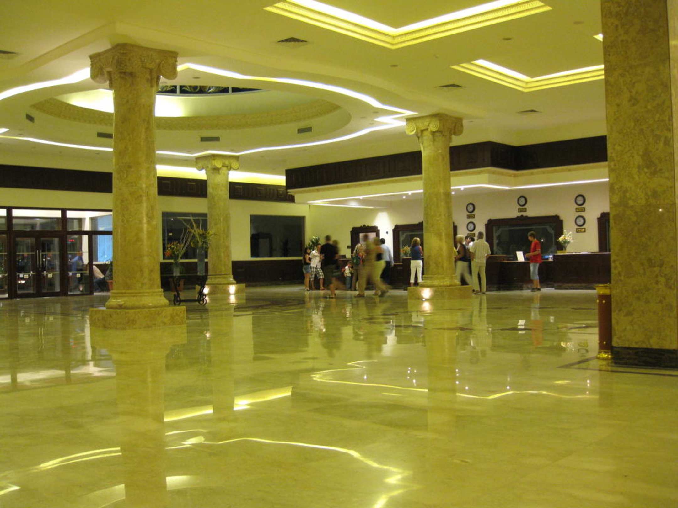 Die riesige Eingangshalle mit Fenster direkt auf die Poolanlage