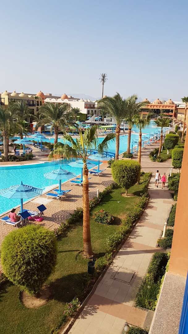 Vom Balkon auf Pool Titanic Beach