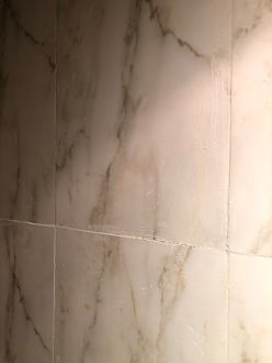 Badfliesen stehen ab und die Fugen sind vollgekleistert mit Material