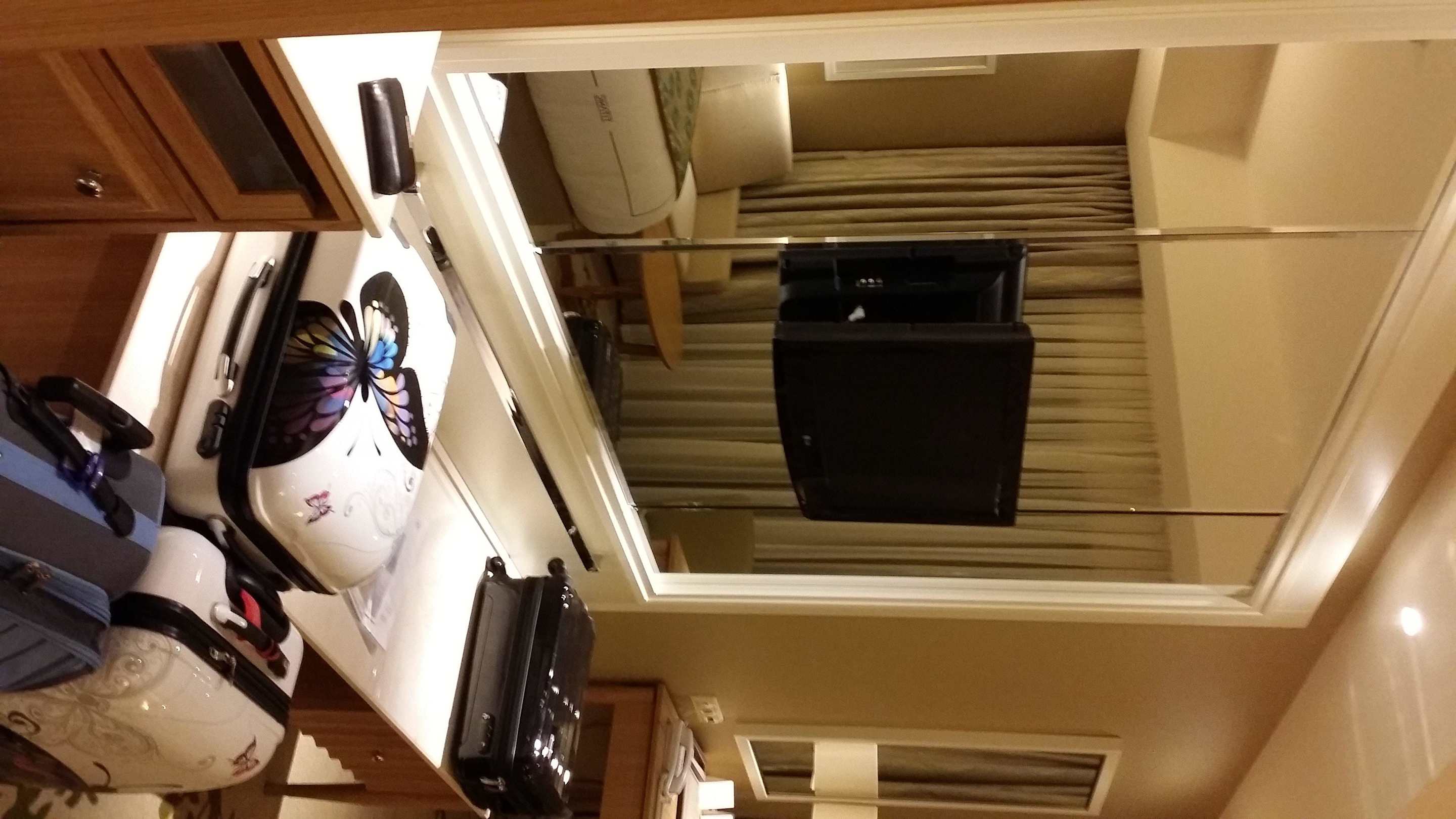 TV im Spiegel und Minibar