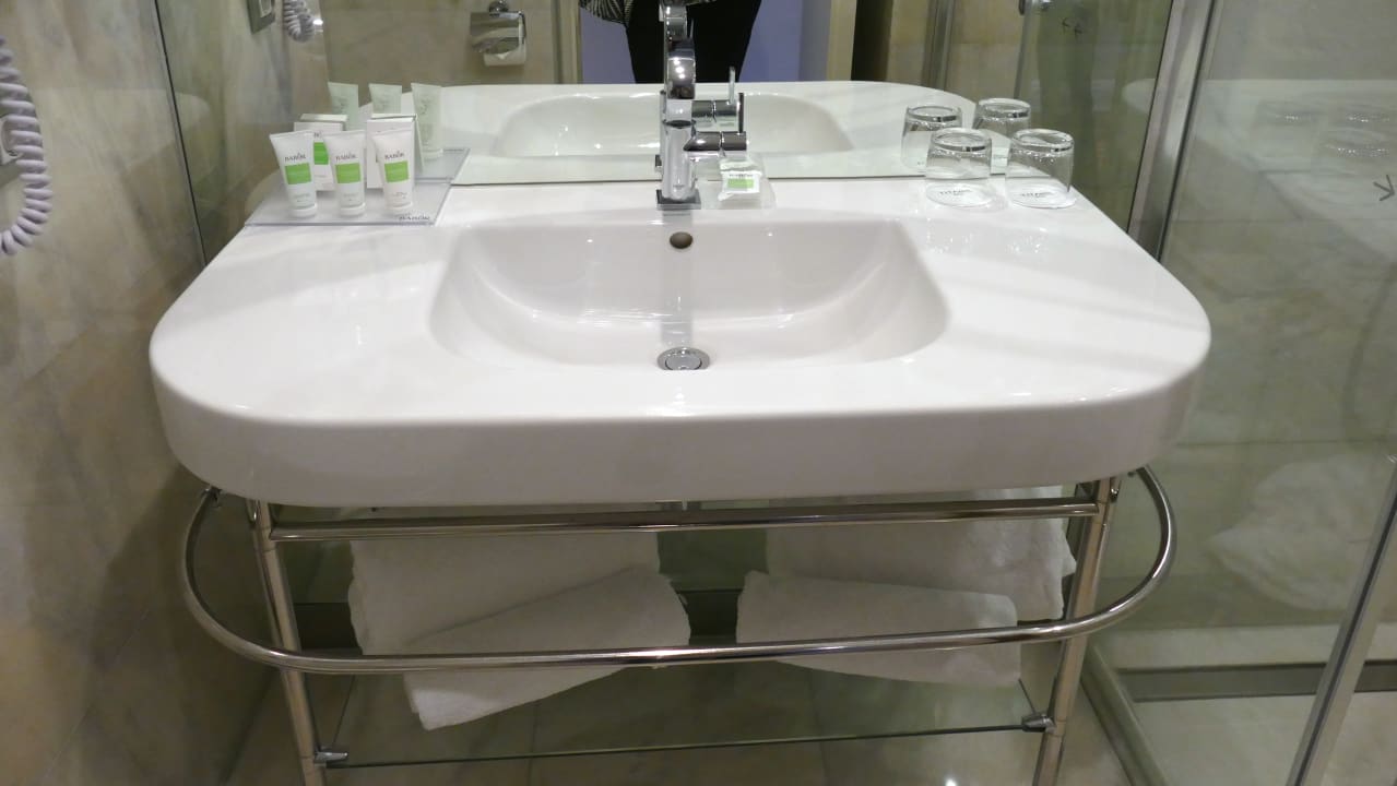 Einzelwaschbecken im Bad neben der Dusche