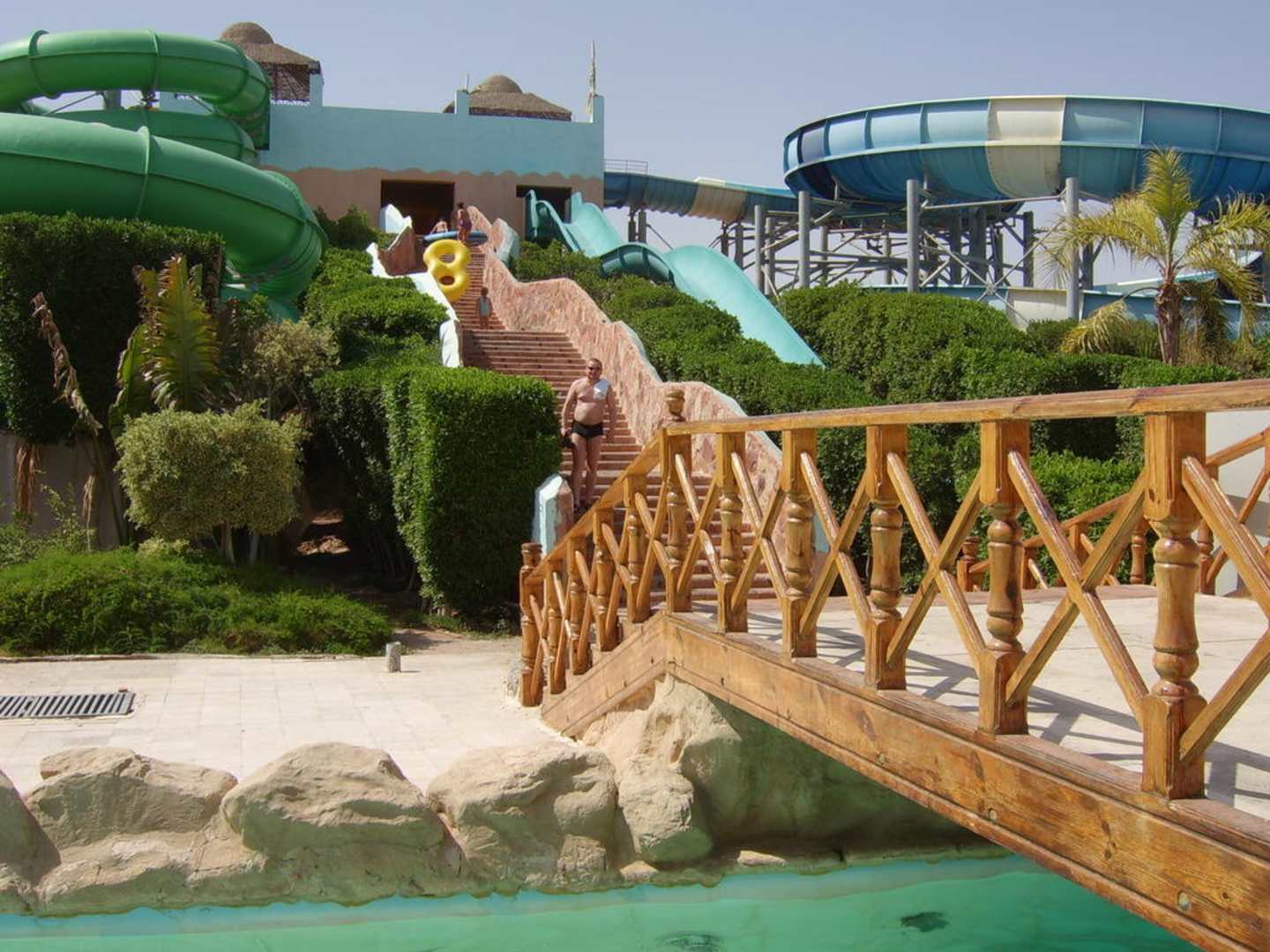 tutaj mój facet idący na jedną ze zjeżdżalni - pod tym względem atrakcje były super