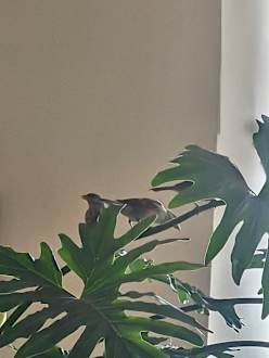 Mehrere Vögel halten sich in dem Gebäude auf