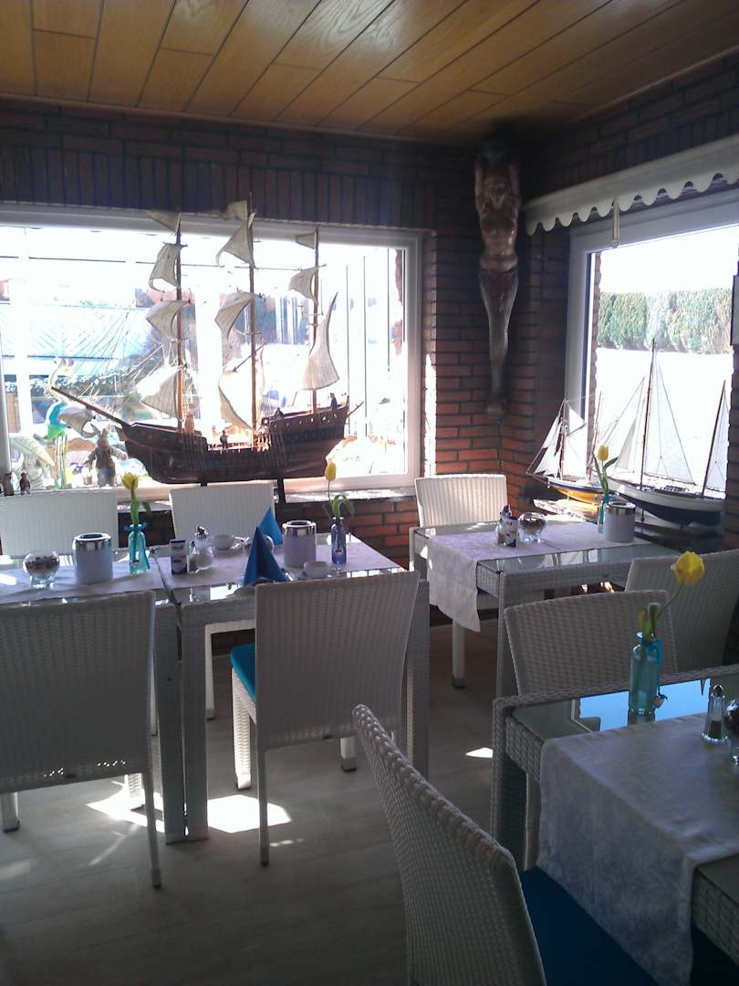 Der Früstücksraum in hellen Farben