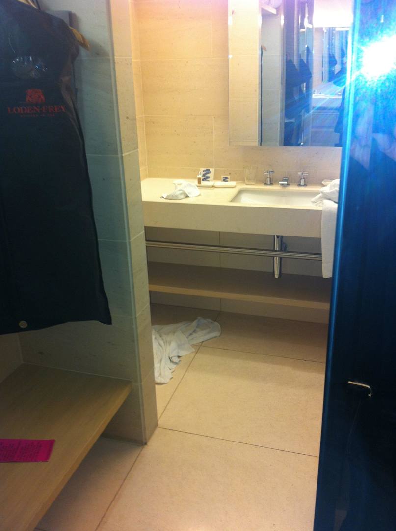 Blick durch die Garderobe auf das Bad