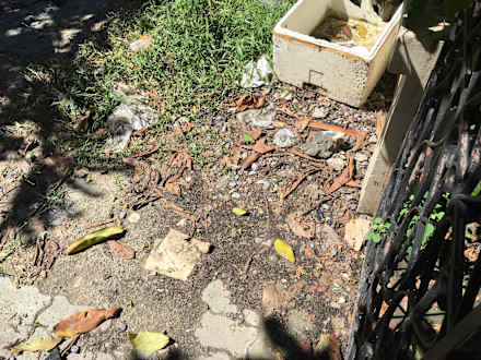 Garten eigentlich nicht vorhanden! Auch kein angelegter Wasserfall!! Nur Dreck! Vorm Eingangsbereicht der Müll der Nachbarn, die anscheinend alles hier ablagern, weil selten bewohnt!!