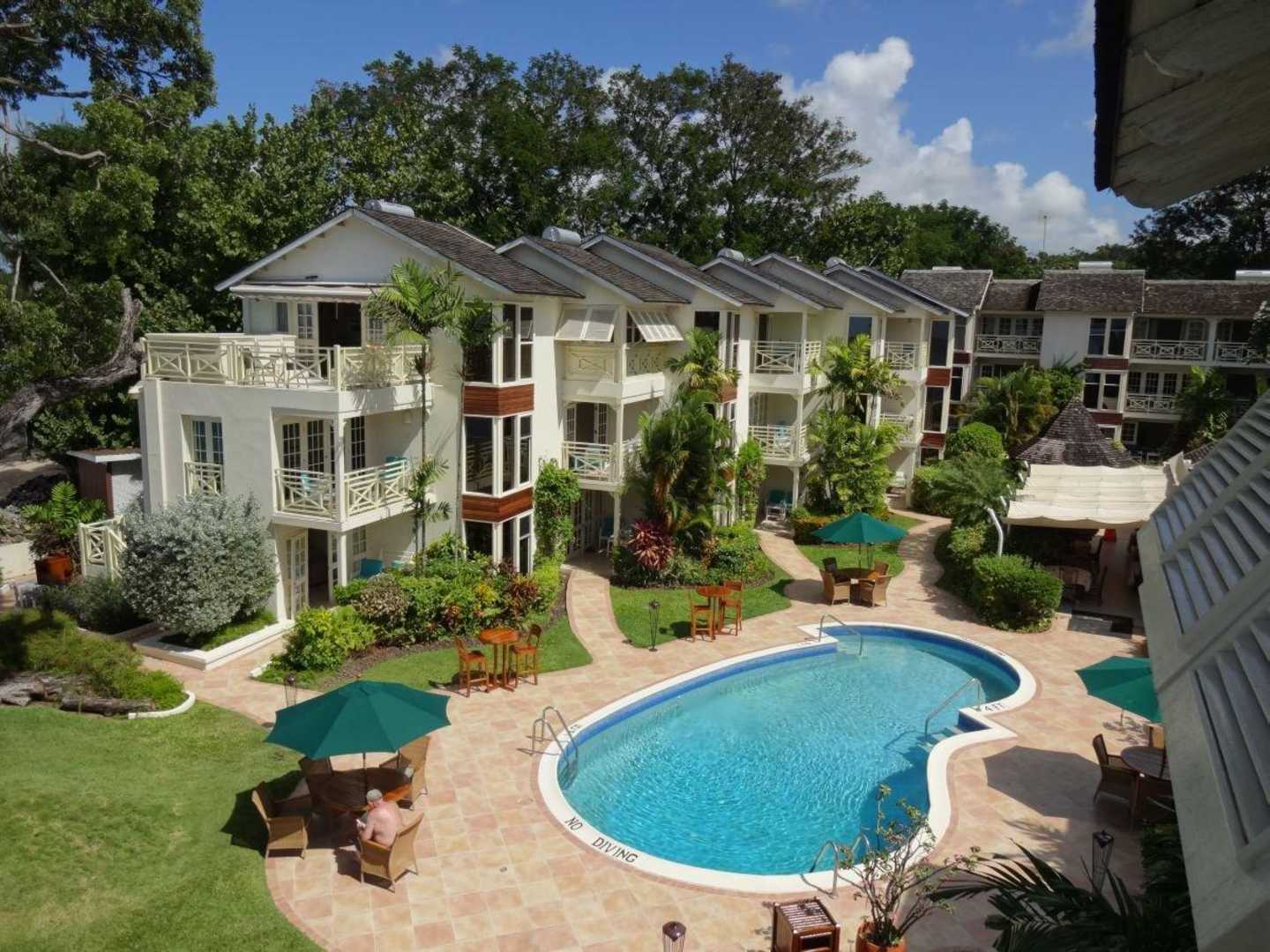 Blick vom Zimmer auf die Anlage